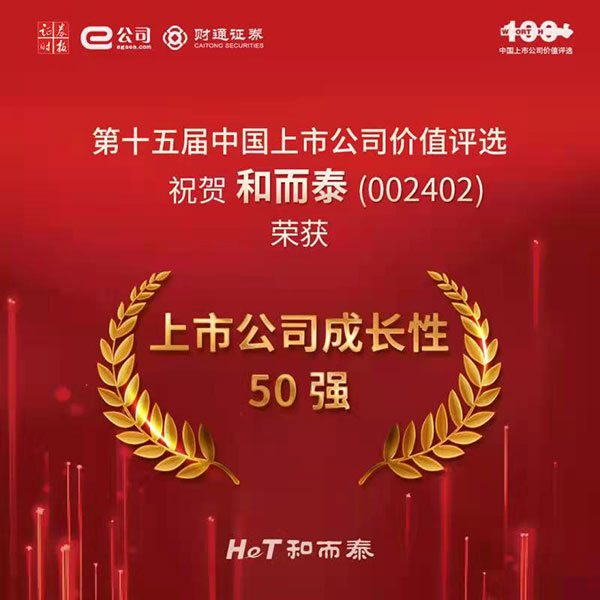 喜訊!和而泰榮獲“上市公司成長性50強”獎項